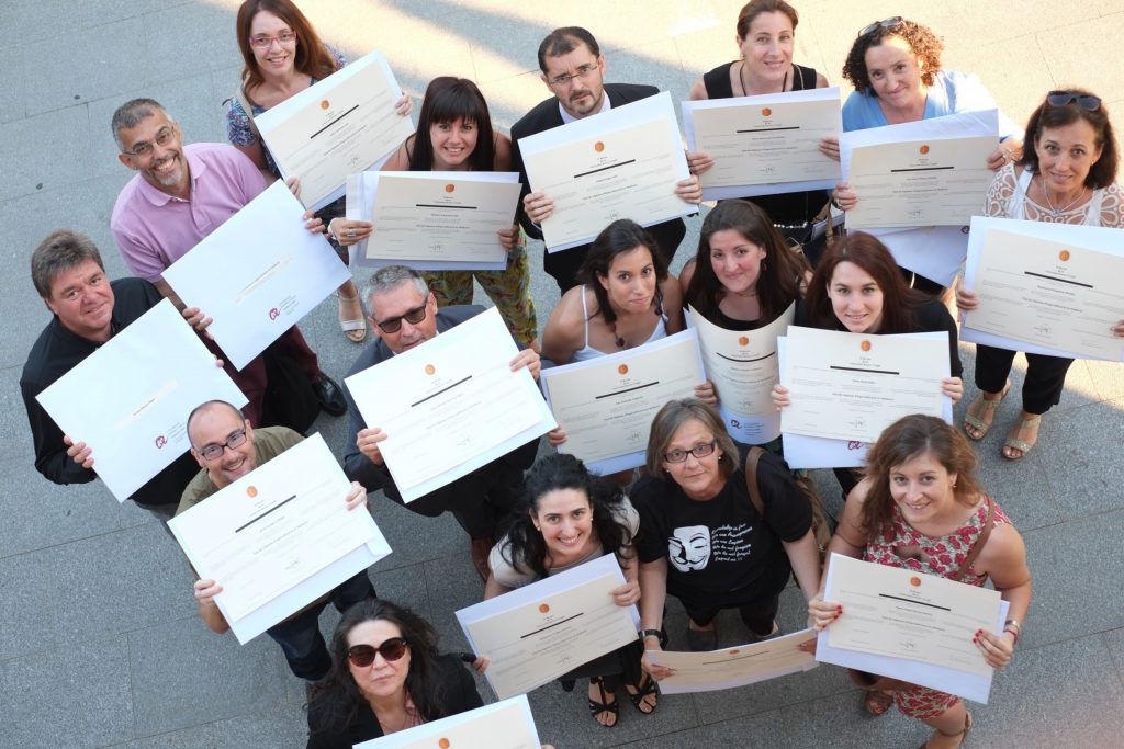 Un grup d'alumnes de totes les edats, amb els diplomes universitaris.