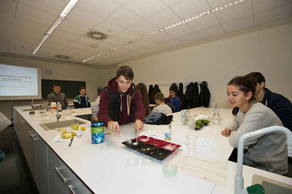 Els tallers del batxillerat dels àmbits de les ciències i la tecnologia han estat relacionats amb la infermeria, les biociències i l’enologia. En infermeria s’ha dut a terme un taller de reanimació, una activitat que ha consistit a mostrar accions que contribueixen a una millora de les possibilitats de supervivència després d’una aturada cardíaca, anomenades Suport Vital Bàsic (SVB) i els han ensenyat a fer funcionar un aparell de desfibril·lació. Pe que fa al taller d’enologia “Estimulació dels sentits: vista, olfacte i gust” s’ha submergit els escolars en el món de la percepció i els sentits: com funcionen, com interaccionen i quina suggestió provoca aquesta relació. Amb aquest taller aprenen que l’estimulació dels sentits va més enllà del món del vi. I, finalment, al taller “La recepta científica en l’àmbit de les biociències” han pogut visualitzar els diferents esglaons de l’estudi que es duen a terme a un laboratori: la investigació totalment “in vitro”, al món dels cultius cel∙lulars, l’experimentació animal, o les tècniques més punteres, per exemple en el camp de les ciències òmiques.
