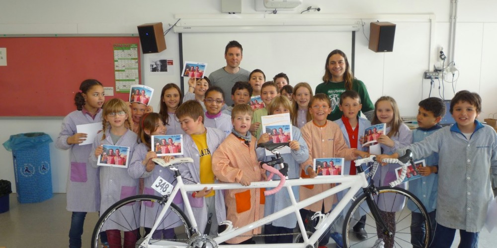 Visita a l'escola de David Llauradó i Christian Venge, ciclistes-guies de la selecció paralímpica espanyola.