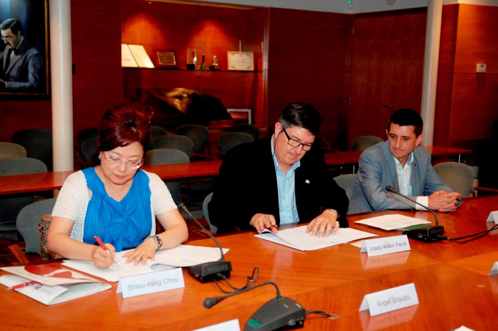 La Universitat continua ampliant i intensificant les relacions acadèmiques amb universitats de la Xina. S'ha signat un nou conveni marc de col·laboració, ara entre la URV i Wenzao Ursuline University, de Taiwan. El dilluns, 27 de juliol, l'han firmat la rectora Shieu-Ming Chou i el rector Josep Anton Ferré, en un acte al rectorat. Alumnes d'aquesta universitat vindran a la URV en el curs 2015-16 per seguir el curs universitari de Llengua Espanyola