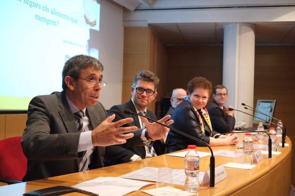 La lliçó del doctor Mariné Font va ser “Són segurs els aliments que mengem?”.  El conferenciant és catedràtic emèrit de la UB  i expert en nutrició i ciències dels aliments, en particular dins el camp de les amines biògenes i poliamines.  Destaca per la seva trajectòria científica nacional i internacional en relació a les seves tasques investigadores, educatives i divulgadores i també les seves tasques de gestió universitària i de recerca, contribuint a la definició dels ensenyaments de Farmàcia, Ciència i tecnologia d’aliments i Nutrició Humana i Dietètica. Va estar acompanyat a la taula per la vicerectora d’Avaluació de la Qualitat i exdegana de la Facultat, Montserrat Giralt, del regidor d’Innovació, Empresa i Ocupació de l’Ajuntament de Reus, Marc Arza; del degà actual, Antoni Castro i del responsable de l’ensenyament de  Nutrició Humana i Dietètica, Jordi Salas-Salvadó.