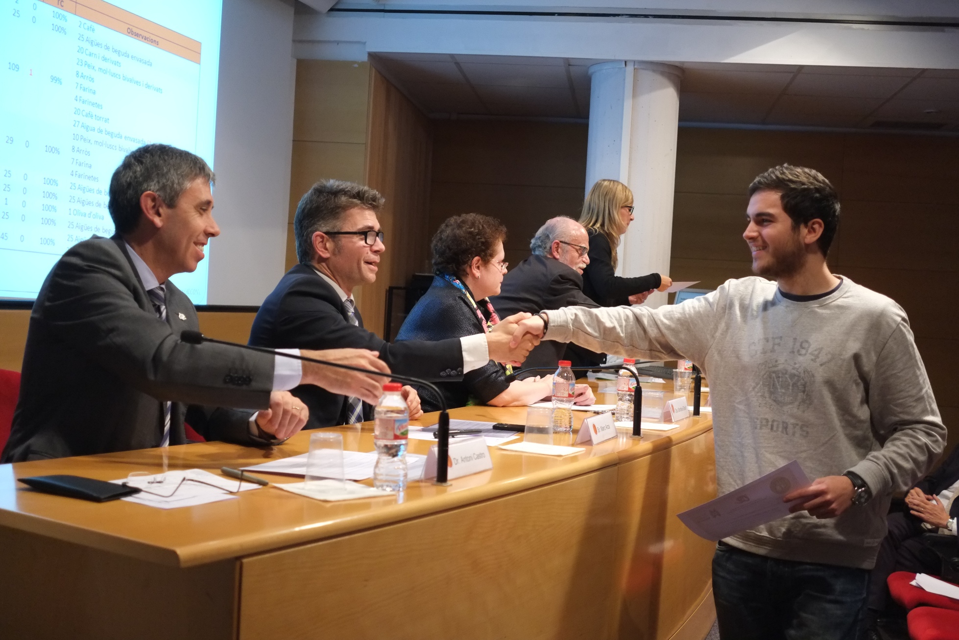 Pel que fa a la tercera modalitat, els premis per a alumnes interns (alumnes que estan fent tasques de suport als laboratoris de recerca), els guanyadors han estat, en Medicina, Lluïsa Torrents pel pòster “Efecte de les tintes dels tatuatges sobre els nervis perifèrics” i Joan Àngel Baldó, Rosa Belén García-Chamón Brígido i Tere Moreno López per “Aplicació de nous indicadors de pèrdua ponderal en cirurgia baràtrica”. De l’ensenyament de Nutrició Humana i Dietètica, la guanyadora ha estat Sharay González, que ha presentat un pòster sobre els “Efectos de la pérdida de peso preoperatoria mediante una dieta muy baja en calorias versus una dieta mixta, en pacientes obesos mórbidos candidatos a cirugía bariátrica” Finalment, els premiats  de l’ensenyament de Fisioteràpia han estat Ramon Sureda i Vanessa César, que ha  estudiat la “Valoració de l’efectivitat en diferents tractaments de potenciació muscular en la rehabilitació post-meniscectomia”. Per a totes les modalitats els premis han  estat de 500 euros, per persona o per grup.