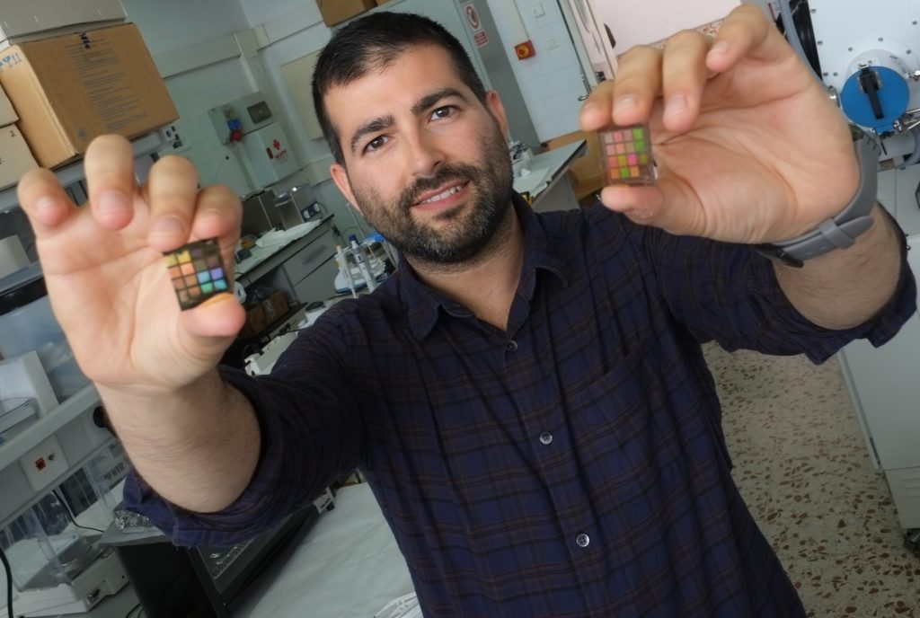 Agustín Mihi mostrant els critalls plasmònics amb els que treballa, al laboratori del grup de recerca Nephos