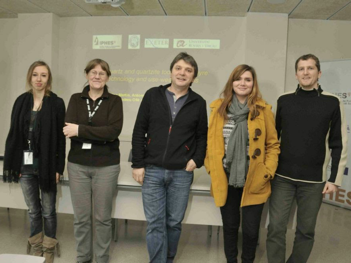 Un equip internacional integrat per científics de Paris i de l’IPHES (Institut Català de Paleoecologia Humana i Evolució Social) han unit esforços per ser més competents a l’hora d’aprofundir en el coneixement de l’ús de les eines prehistòriques. En aquest context, Marie-Hélène Moncel i Antony Borel (investigadors del Département de Préhistoire-MuséumNational d’Histoire Naturelle), Sabine Martin (becària predoctoral de la University of Exeter, UK), Antonella Pedergnana (becària predoctoral a l’IPHES) i Andreu Ollé (investigador de l’IPHES i professor associat de la Universitat Rovira i Virgili) han mantingut recentment una trobada de treball a Tarragona.