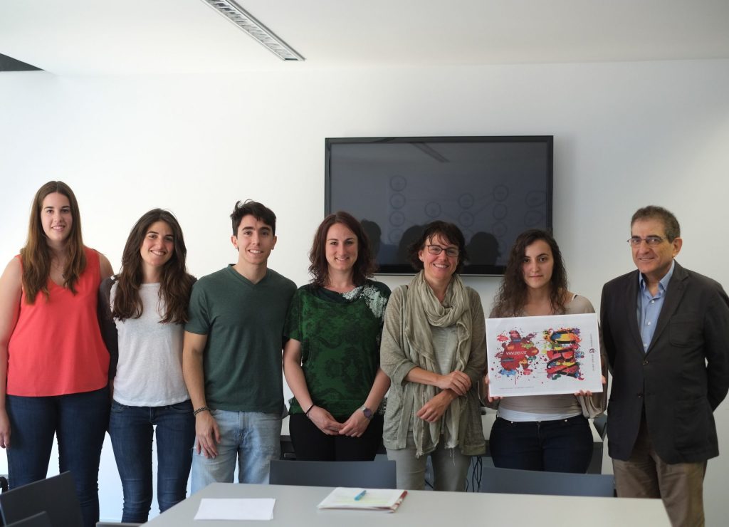 Marta Olivas i els estudiants finalistes reben els premis del IV Concurs de disseny de la Carpeta URV