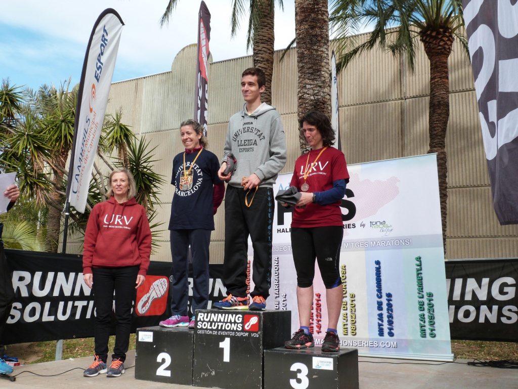 El CCU de Mitja Marató i de 10 Km va tenir lloc a Cambrils el diumenge, 1 de març dins la Mitja Marató de Cambrils que organitza Running Solutions. En Mitja Marató masculina, el segon lloc ha estat per Xavi Nadal, director de l’Escola Universitària de l’Activitat Física i l’Esport, EUSES a les Terres de l’Ebre, després de l’estudiant classificat de la UVic; i en 10 Km. femení, el tercer lloc ha estat per a Mar Perpinyà (URV), del personal d’administració i serveis (a la foto, juntament amb Ruth Marquès del Servei d’Esports). El primer lloc ha estat per la UdL i el segon per la UB.