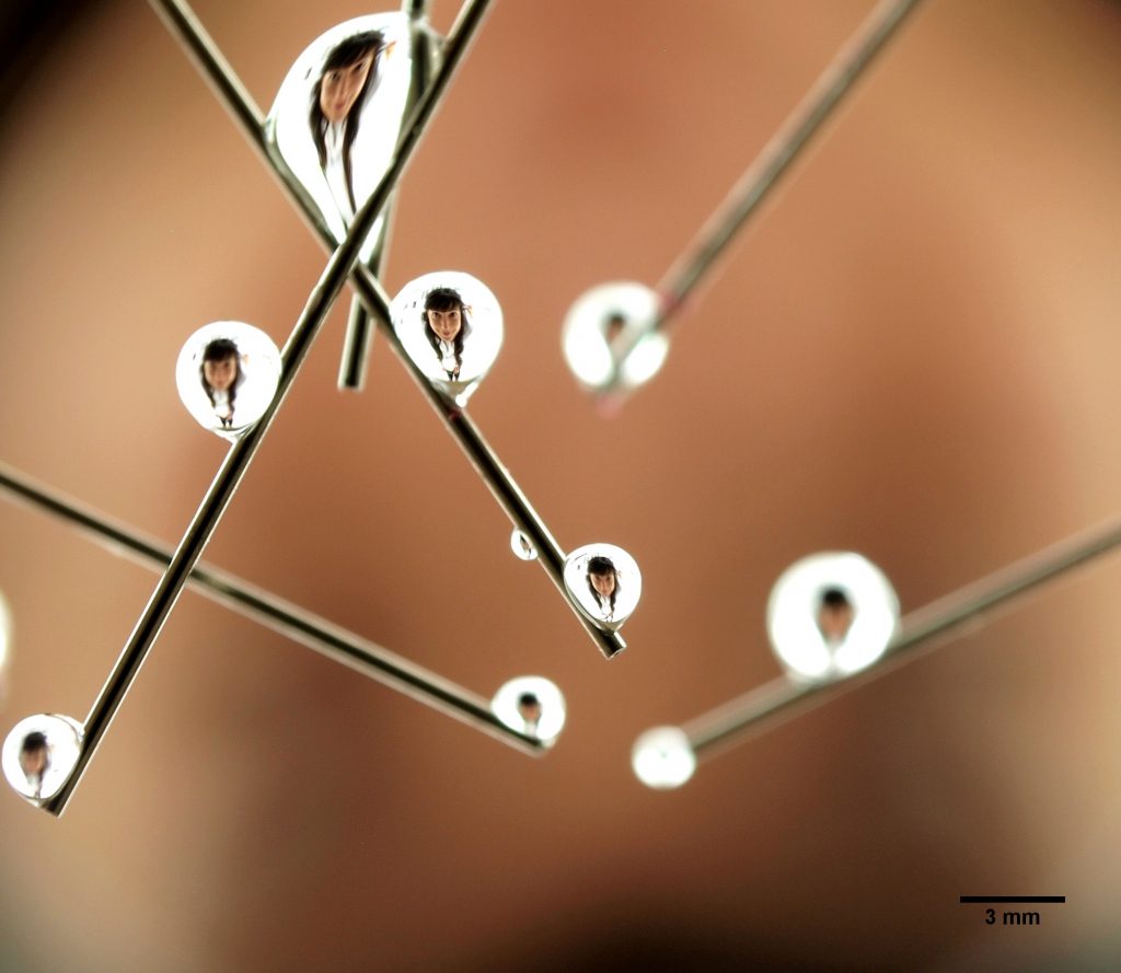 L’obra “Una gota de gràcia” retrata l’acumulació de líquid en un tub capil·lar d’electrospray. Nicholas Sochorakis és estudiant del doctorat de Nanociència, materials i enginyeria química, del Departament d’Enginyeria Química.