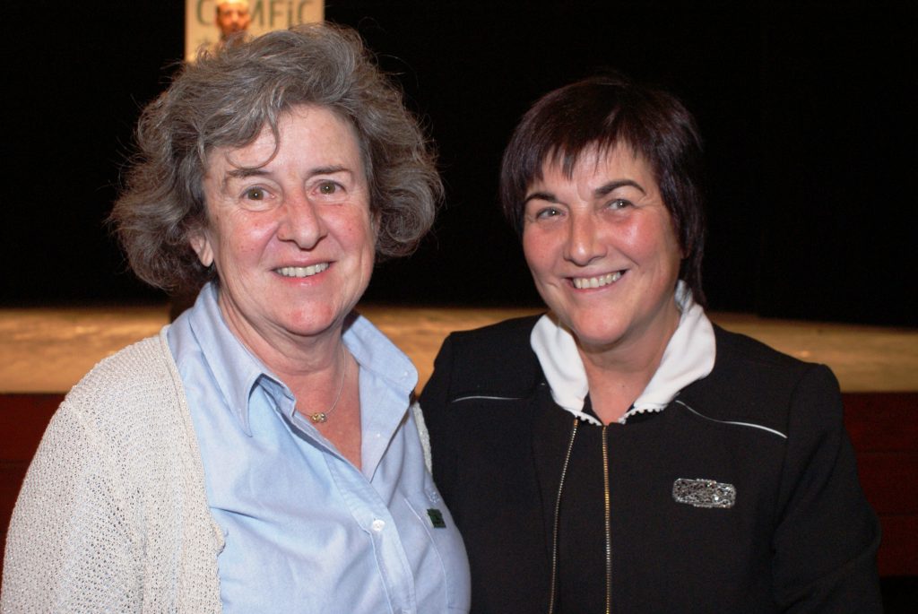 Rosa Solà, a la dreta, i la presidenta de CAMFiC Dolors Forés durant l'acte de nomenament de Membre de Mèrit de la Societat Catalana de Medicina Familiar i Comunitària.